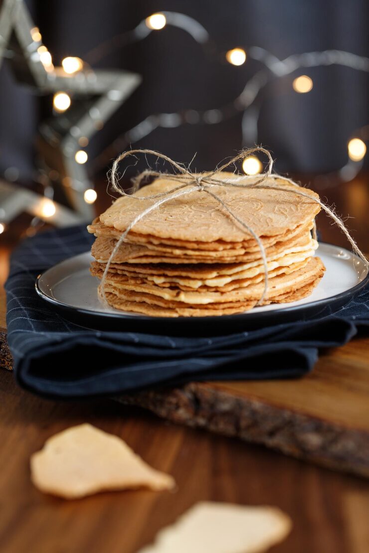 Блинчики после выпечки имеют мягкую текстуру, однако при выдерживании в духовке при температуре 100 градусов Цельсия в течение 30–60 минут они становятся хрустящими.
