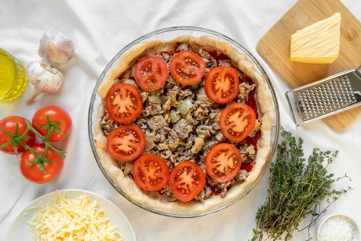 Ингредиенты тесто слоёное — 275 г томаты кусочками с базиликом — 1 б.(400 г) укроп свежий и сухой шпинат свежий паприка — 1 шт. томаты желтые и красные лук — 0,25 шт. колбаса варёная — 200 г майонез — 2-3 ст.л. сыр тёртый — 2 горсти кукуруза — 0,5 банки хмели-сунели сухая паприка […]