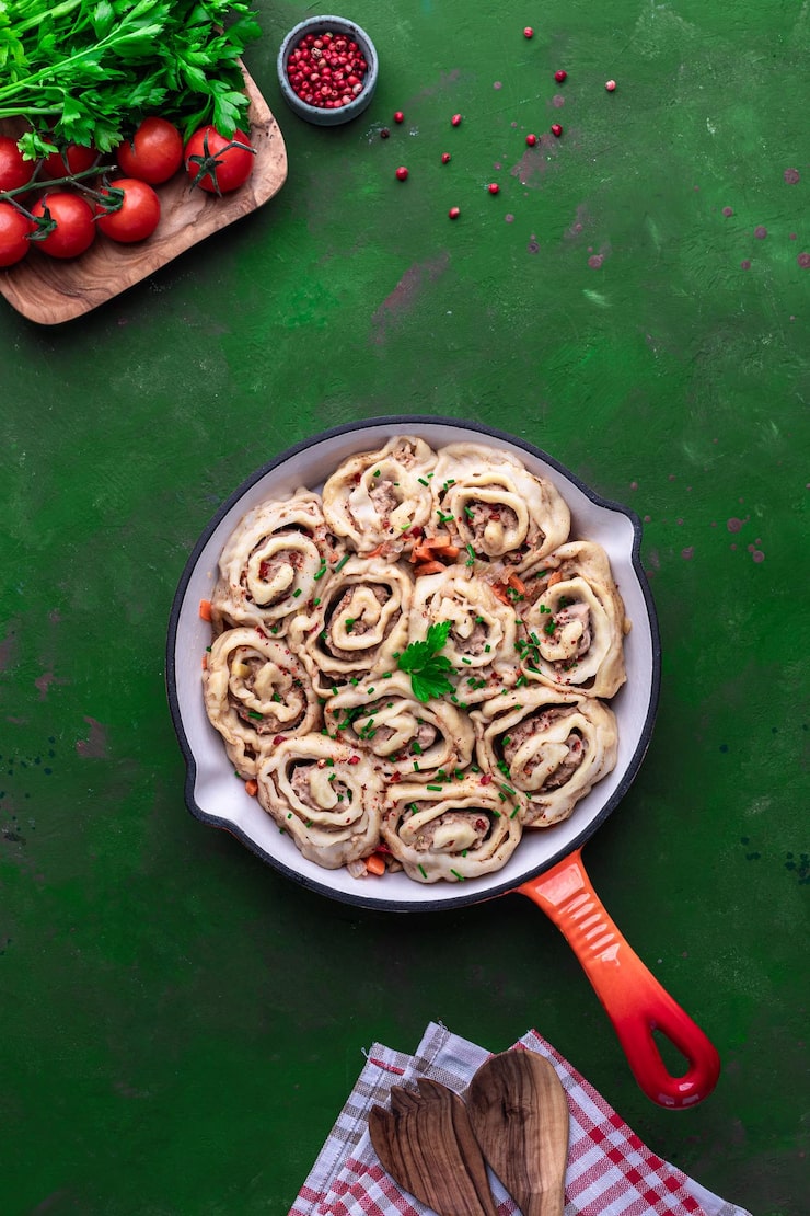 Ингредиенты тесто: молоко — 350 мл. сахар — 1 ч.л. соль — 1 ч.л. сухие дрожжи — 1 ч.л. с горкой яйцо — 1 шт. сливочное масло — 70 г мука — 650 г растительное масло — 3 ст.л. начинка: фарш (у меня из свинины) — 600 г лук — 2 шт. соль […]