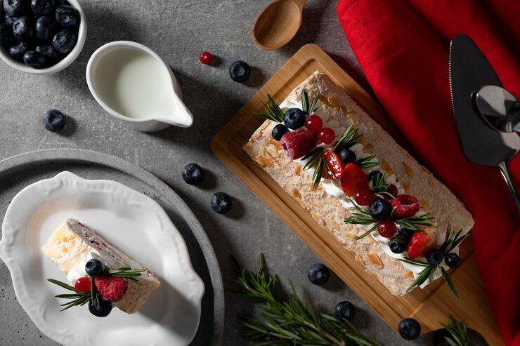 Воздушный бисквит с нежным творожно-сливочным кремом и голубикой