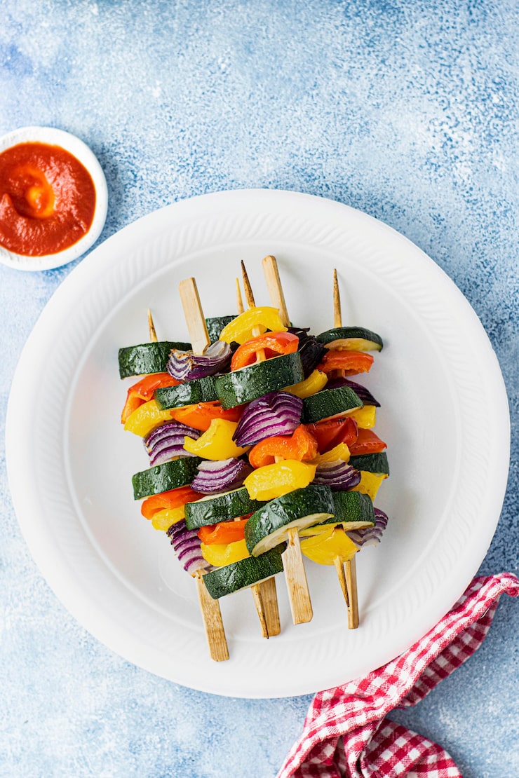 Необычное сочетание: рыбные палочки и фруктово-овощные шашлычки