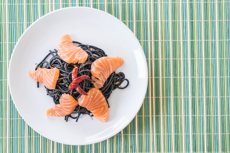 Корейский лосось с коричневым рисом