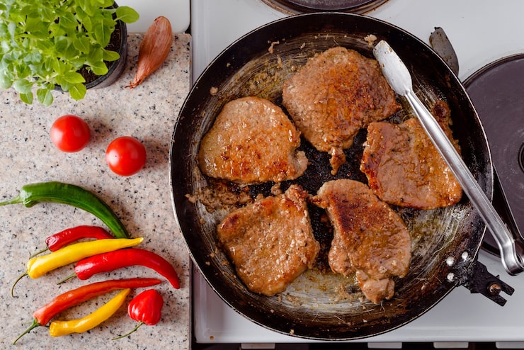 Сочная жареная свинина на гриле, приготовленная на сковороде