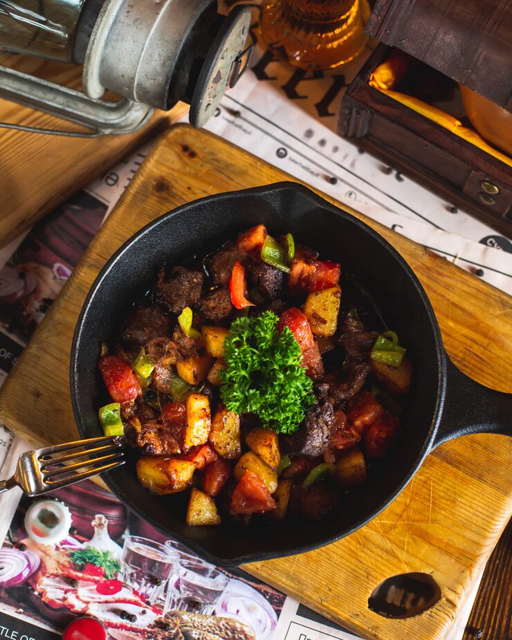 Говядина, тушенная с овощами