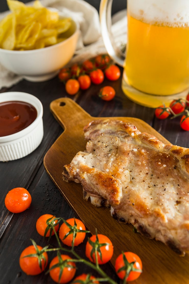 Ингредиенты ребра свиные — 1 кг. растительное масло — 100 мл тимьян — 20 г соль — 10 г апельсиновый джем — 3 ст.л. вино ( красное) — 4 ст.л. кетчуп — половина пачки соевый соус — 2 ст.л. свиные ребра промойте и слегка обсушите. выстелите противень фольгой, затем выложите на него ребрышки. […]