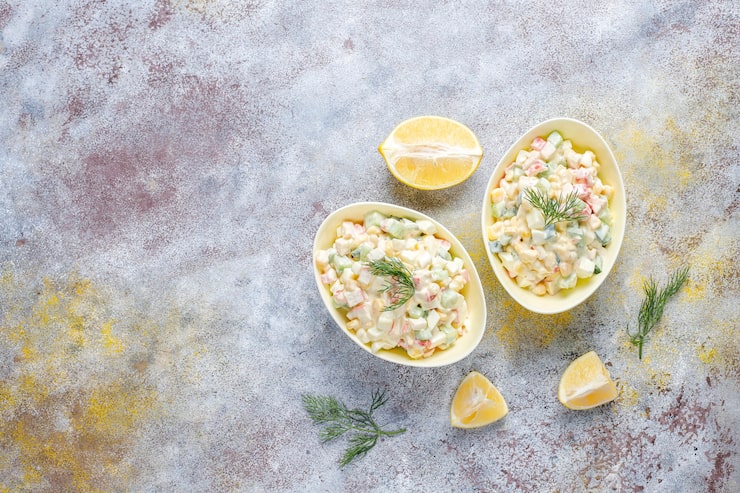 Ингредиенты салат 1: яйца отварные — 4 шт. грибы маринованные — 150 г крабовые палочки — 200 г сыр — 100 г кукуруза консервированная — 150 г майонез — 3 ст.л. зеленый лук — 1 пучок салат 2: крабовые палочки — 100 г помидоры — 2 шт. (300 г) кукуруза консервированная — 200 […]