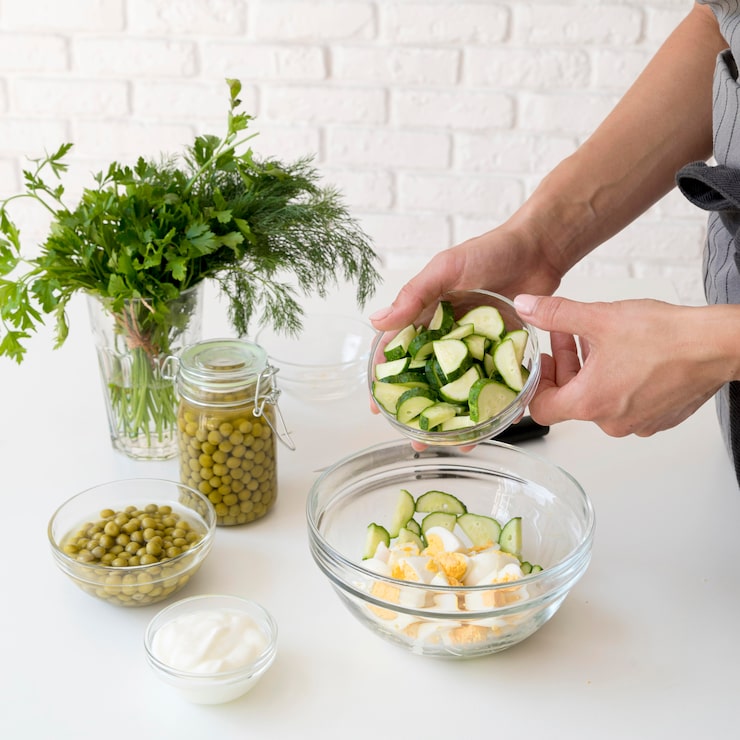 Ингредиенты 500 г огурцов 70 г зеленого лука 20 г укропа соевый соус Огурцы нарежьте тонкими полукольцами, добавьте мелко порезанный лук и укроп, заправьте 3-4 столовыми ложками соевого соуса и тщательно перемешайте. Салат будет готов к подаче через пять минут. Еще рецепты Кабачки в корейском стиле: оригинальный салат Куриный салат с копченостями и […]