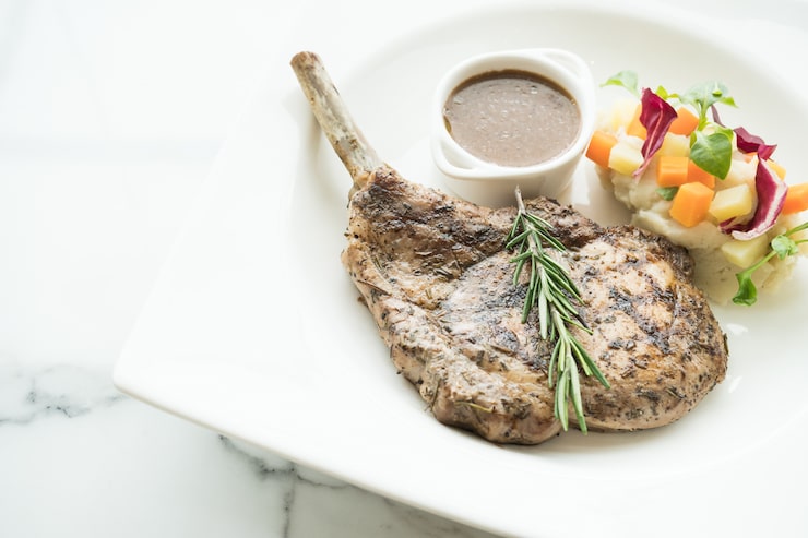 В качестве основы для этого блюда используется корейка на косточке, уже замаринованная (Окраина). Если же вы предпочитаете, мясо можно замариновать самостоятельно, используя свой рецепт.