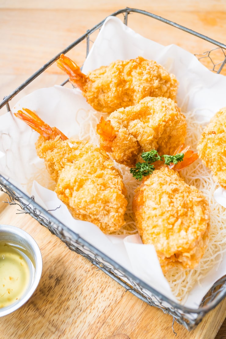 Для жарки во фритюре подготовьте все кусочки макруруса: посолите и поперчите по вкусу, затем последовательно обмакните каждый в кукурузный крахмал, яйцо и обваляйте в панировочных сухарях.