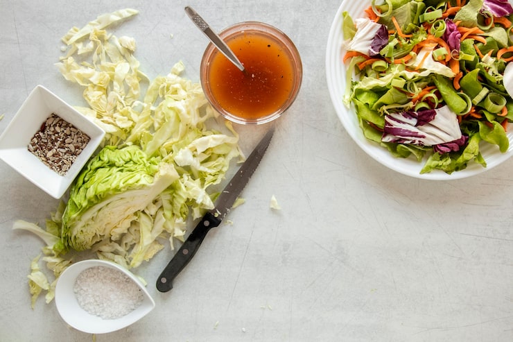 Соедините все овощи с апельсинами и полейте заправкой на основе апельсинового сока.