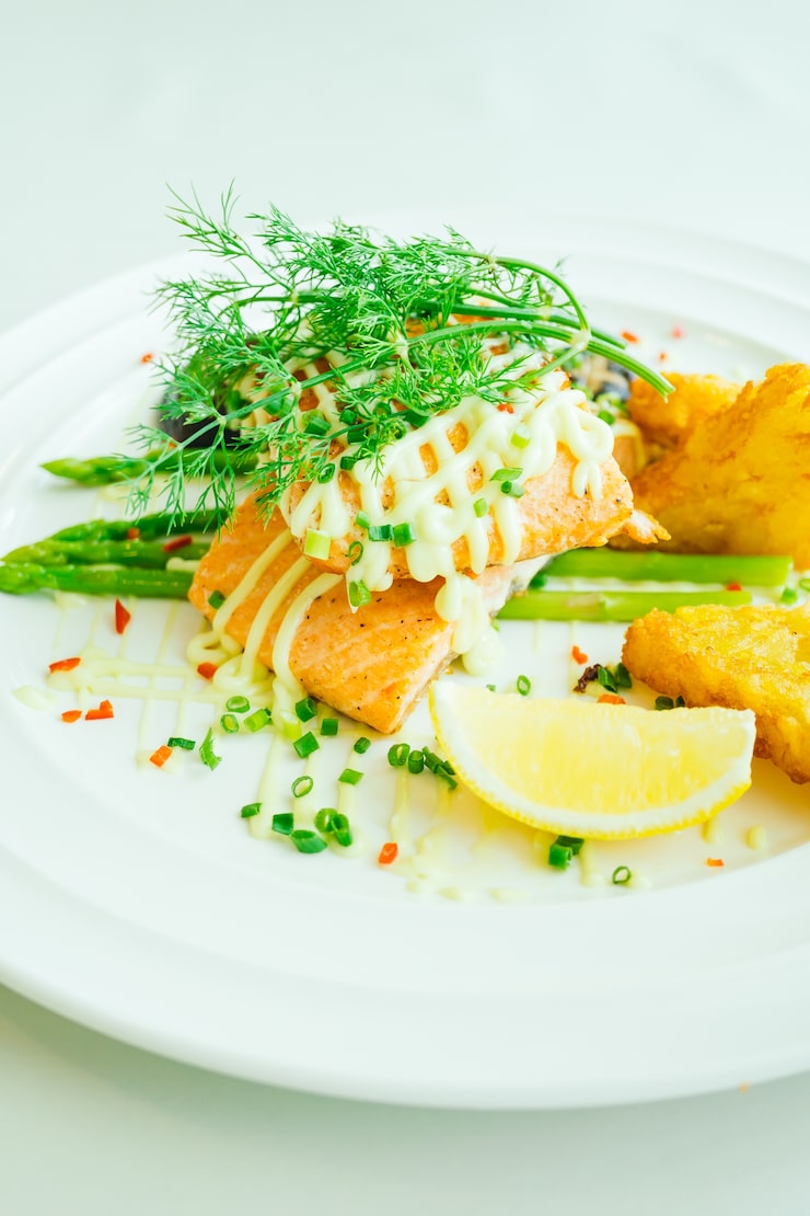 Филе судака, оставленное с кожей, необходимо нарезать на три части под углом 45 градусов, затем замариновать с использованием соли, приправы для рыбы и сока лимона. После этого его следует запанировать в муке и обжарить на растительном масле, добавив зубчик чеснока.