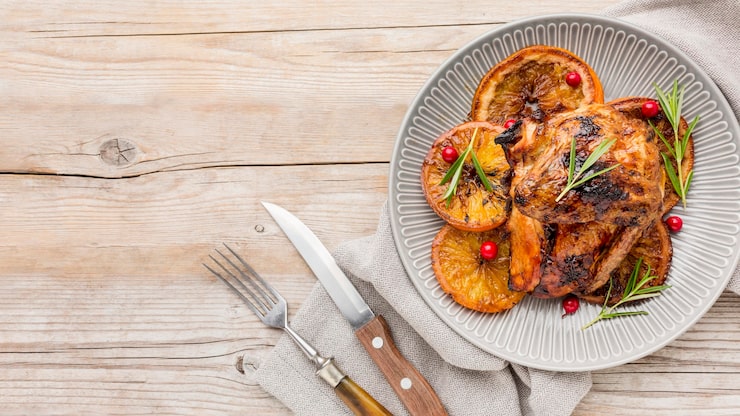 Свинину следует нарезать на куски, отбить, посолить и поперчить.