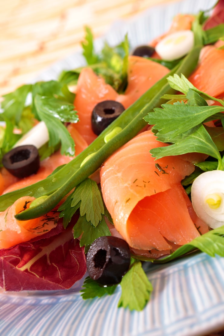 Помидоры опускают в кипящую воду на 30 секунд. Затем их быстро охлаждают в холодной воде, снимают кожицу и измельчают. Филе лосося нарезают крупными кусками. Лук и чеснок измельчают. Сыр натирают на терке. Петрушку разбирают на отдельные листики. В сотейнике нагревают оливковое масло. Обжаривают лук и чеснок, помешивая, в течение 7 минут. Добавляют помидоры и готовят еще 5 минут. Затем добавляют рыбу, лавровый лист и вливают вино. Уменьшают огонь и готовят блюдо 10 минут.