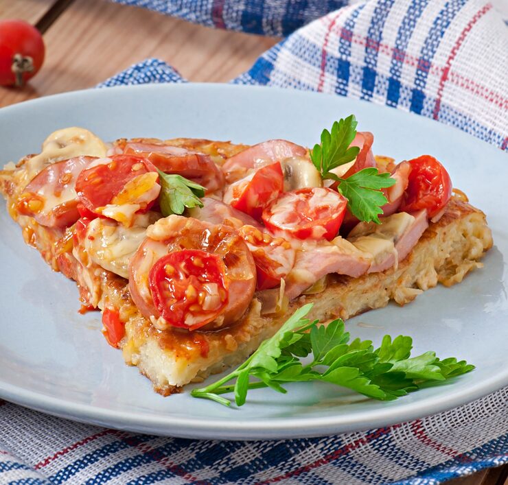Предварительно включите духовку и установите температуру 200º C, затем запекайте до появления золотистой корочки на картофеле.